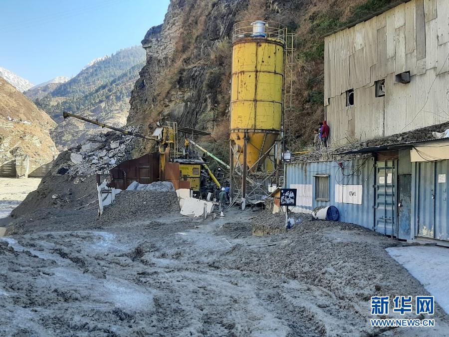 这是在印度北阿肯德邦拍摄的在洪水中受损的水电站(2月7日摄)。新华社发