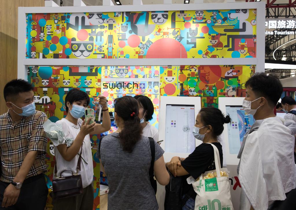 参观者在消博会瑞士馆咨询个性腕表定制服务。新华社记者 金立旺 摄