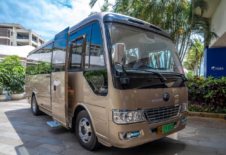 宇通T7公商务接待车正在服务博鳌亚洲论坛。(资料照片)