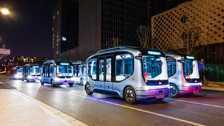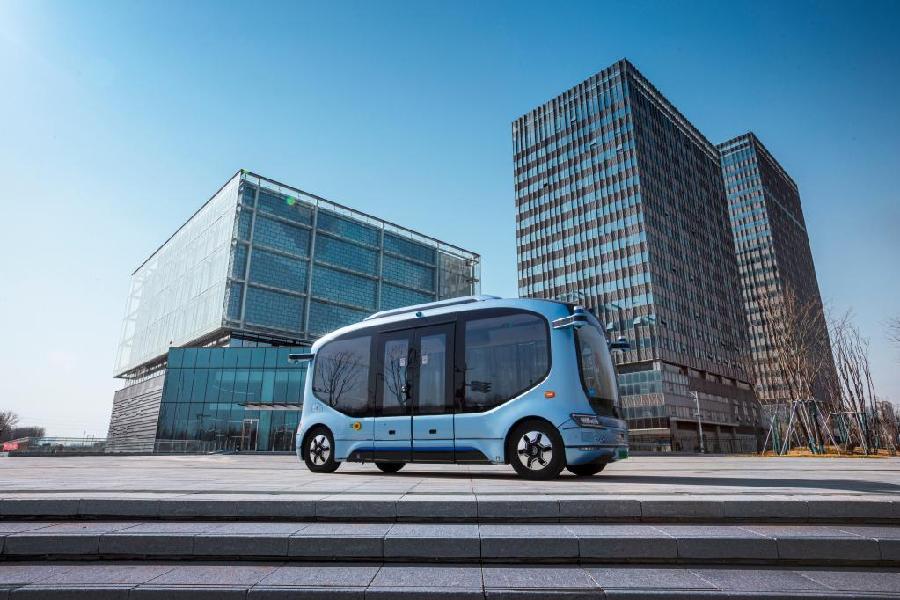 宇通自动驾驶公交在郑州市郑东新区运行中。(资料照片)