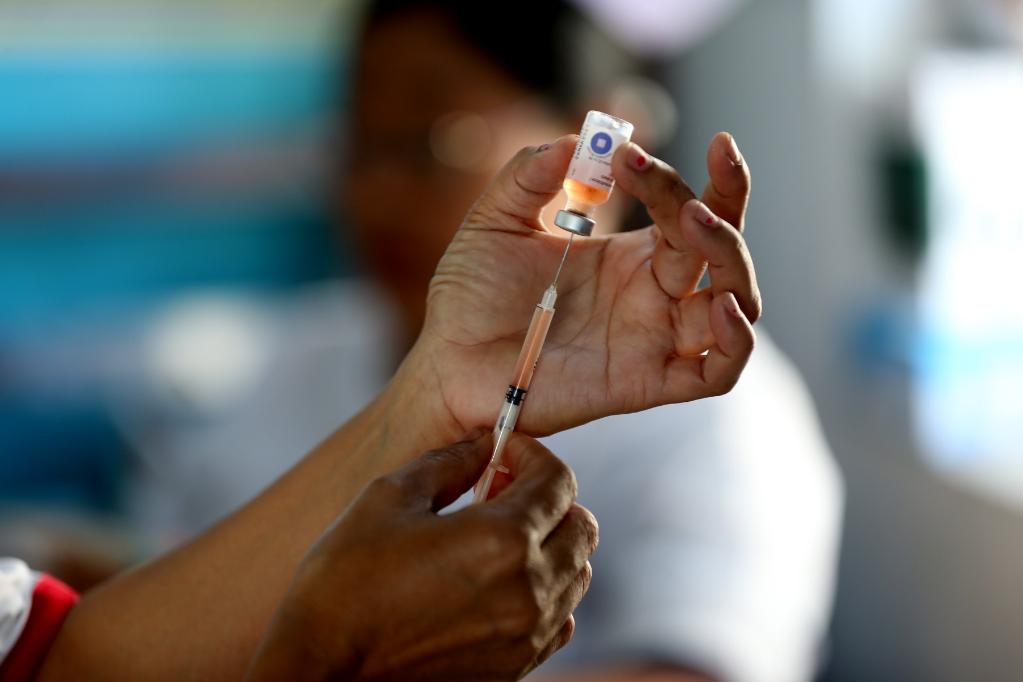 2019年10月17日,在缅甸仰光,一名医务人员准备为儿童接种脊髓灰质炎疫苗。(新华社发,吴昂摄)