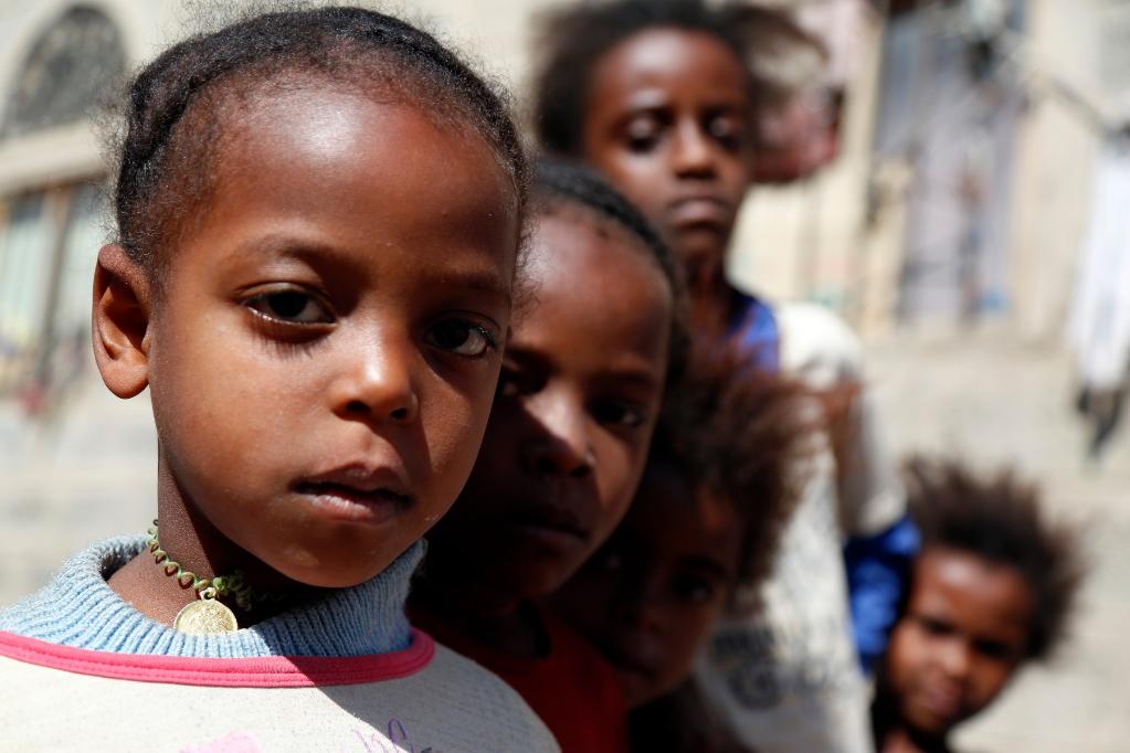 2019年12月24日,在也门萨那,孩子们排队准备接种小儿麻痹症疫苗。(新华社发,穆罕默德摄)