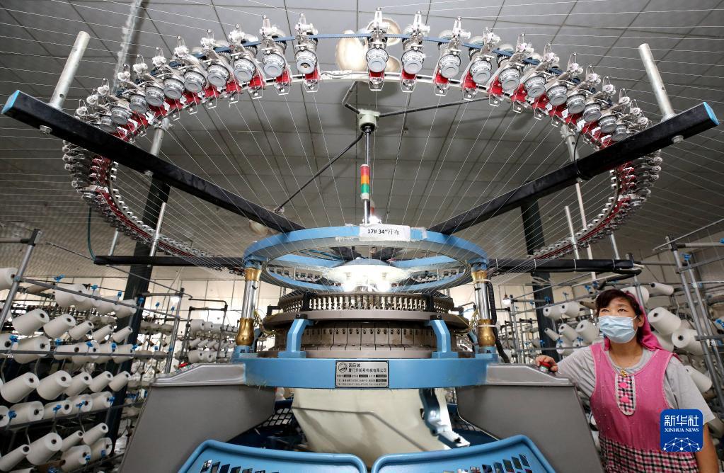 8月22日,在山东省枣庄市税郭镇的一家纺织企业,工人在生产纯棉布。税郭镇生产的纺织服装产品出口到美国、德国、法国、日本、韩国等38个国家和地区。新华社发(孙中喆 摄)