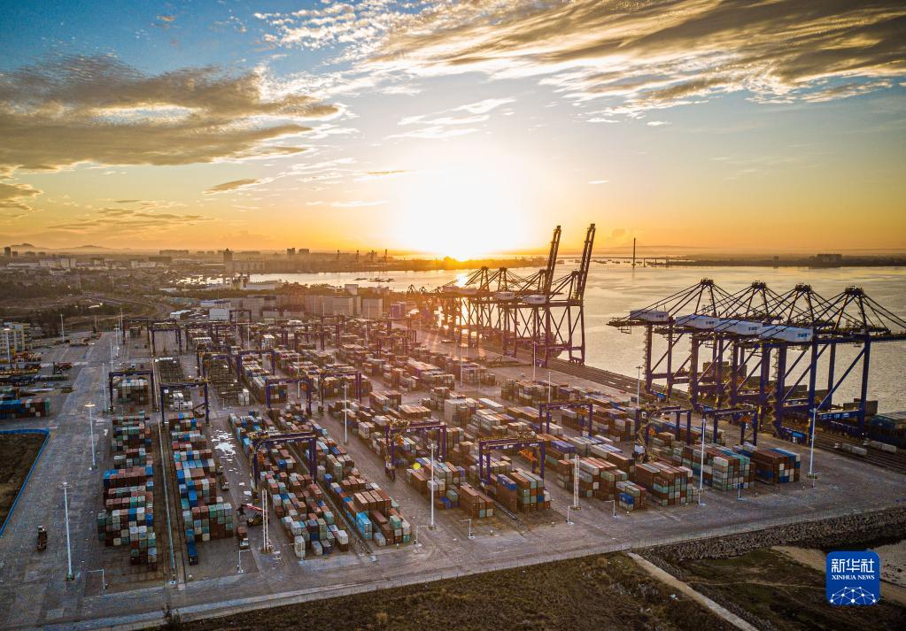 这是5月26日在海南洋浦经济开发区拍摄的洋浦国际集装箱码头(无人机照片)。新华社记者 蒲晓旭 摄