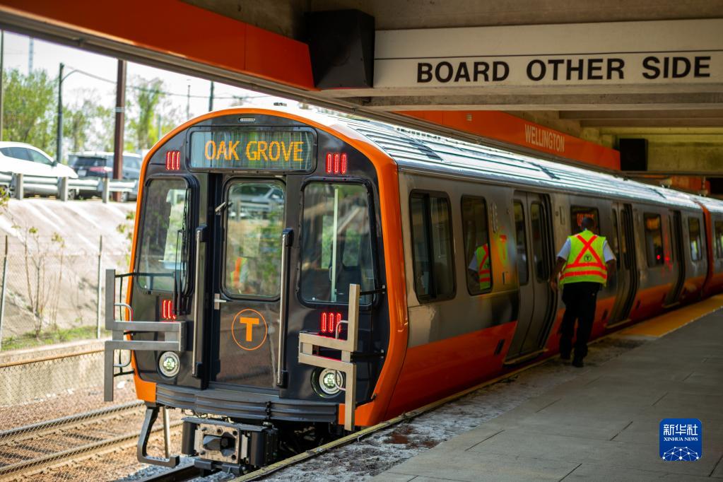 这是2018年5月15日在美国马萨诸塞州梅德福德惠灵顿站拍摄的中车长客为波士顿橙线地铁“量身订制”的首批车辆。这批地铁列车整车具有完全自主知识产权,是中国首批依照美国标准生产的地铁车辆。新华社记者 李木子 摄