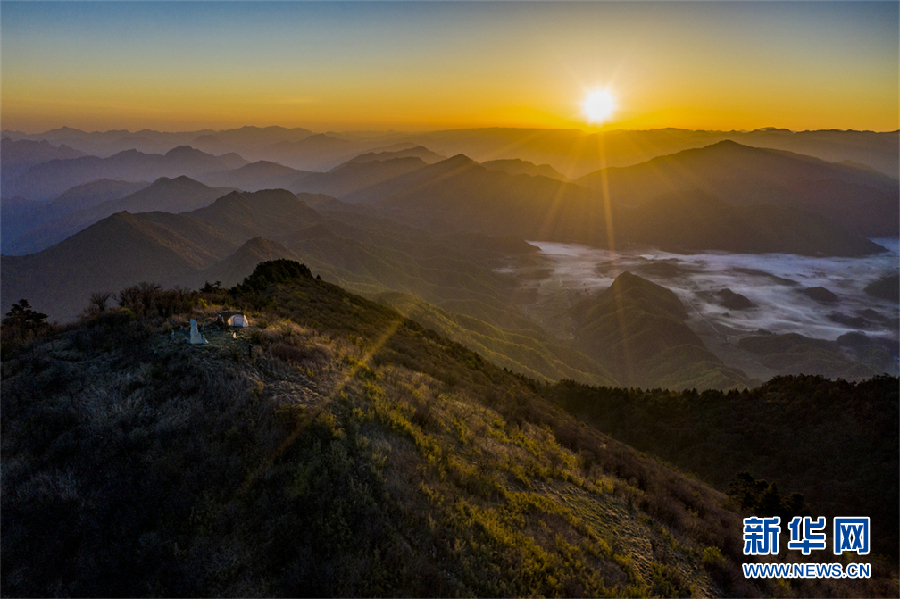 清晨日出之时,阴条岭自然保护区云海风光独美。新华网发(王强 摄)