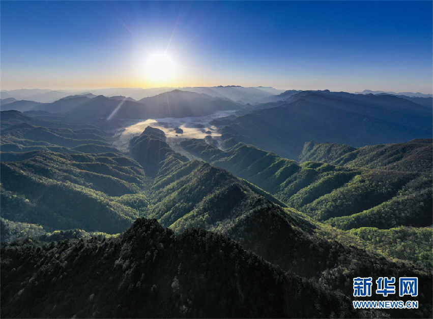 这是摄影师拍摄的阴条岭自然保护区日出景观。新华网发(王强 摄)