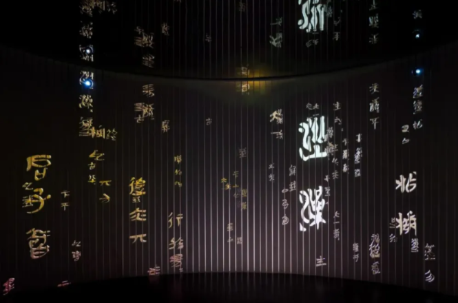 在甘肃简牍博物馆内,一枚枚简牍被放置在细细长长的玻璃管中,墨书在灯光的映衬下笼上了一层昏黄的雾。游客们沉浸在书香浓郁的展馆中,有人驻足俯身使劲靠近简牍,欲辨认细读那些文言墨字;有的人与屏幕互动,串联起不同地名的古今缘分;还有的人被装点在博物馆各处的书法之美所吸引,举起手机拍照合影。