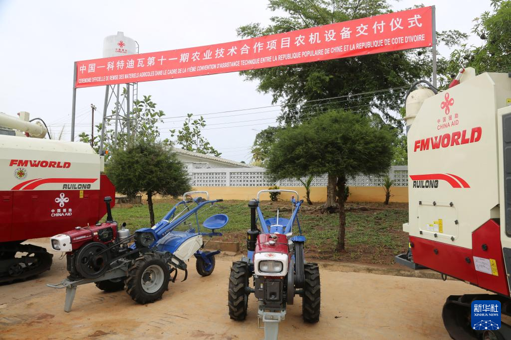 5月31日,中科农业设备和稻种交接仪式在格格杜垦区举行。中国援科特迪瓦农业技术合作组组长郭长友告诉新华社记者:“我们这次为科特迪瓦的水稻种植户带来了联合收割机、水稻精选机、小型碾米机、东方红拖拉机等先进农业设备,还有10吨稻种,希望助力科特迪瓦水稻行业发展,帮助科特迪瓦早日实现水稻自给自足。”
