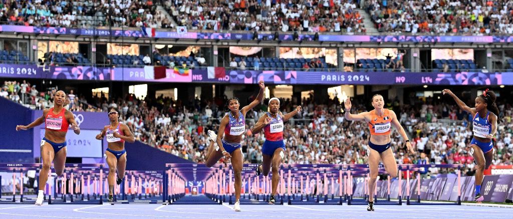 女子100米栏的比赛较为胶着,数名选手几乎同时撞线。经过确认,美国队的拉塞尔以12秒33力压东道主选手桑巴·马耶拉,摘得金牌,上届冠军、奥运纪录保持者卡马乔-奎因排名第三。