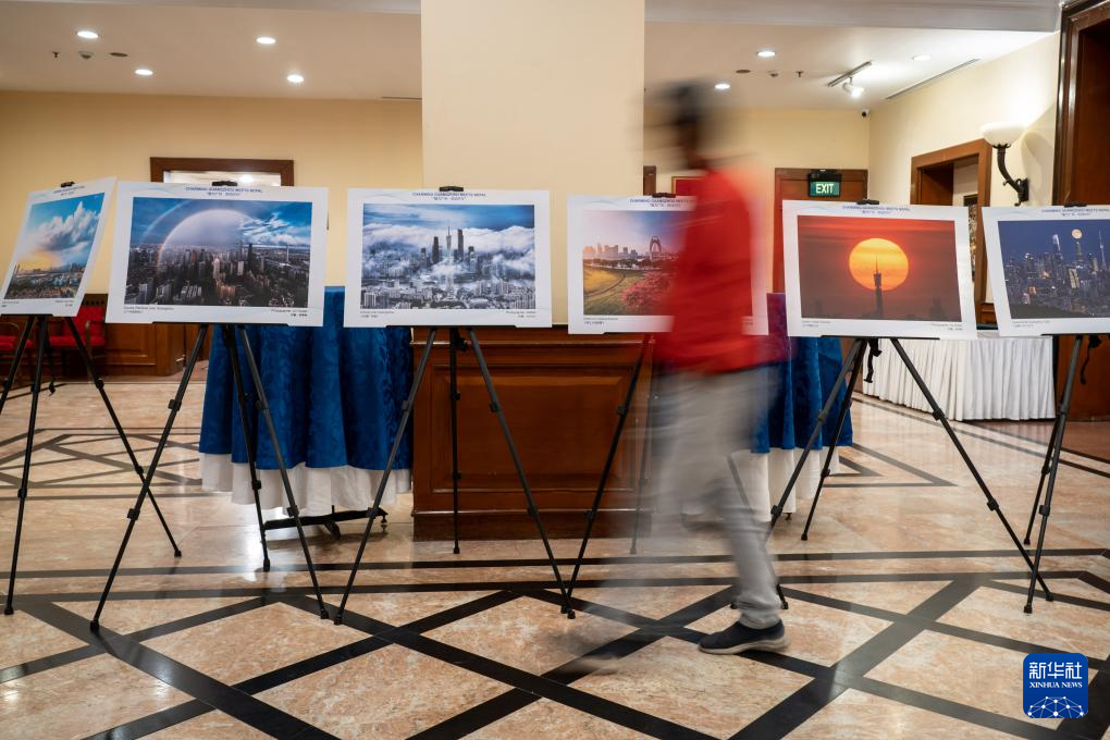 4月15日,在尼泊尔加德满都,嘉宾观看广州城市形象推介会图片展。新华社发(哈里·马哈尔詹摄)