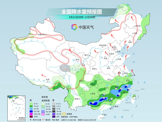 预计今明两天(4月22日至23日),南方的降水相对昨天来说强度将会有所减弱,并且降水核心区域也将向南转移,其中今天,广西、福建等地部分地区或现暴雨。此外,受冷空气影响,未来几天,北方大部气温波动。今明天将陆续小幅回升,周四气温又将明显下降,提醒公众注意及时调整着装。
