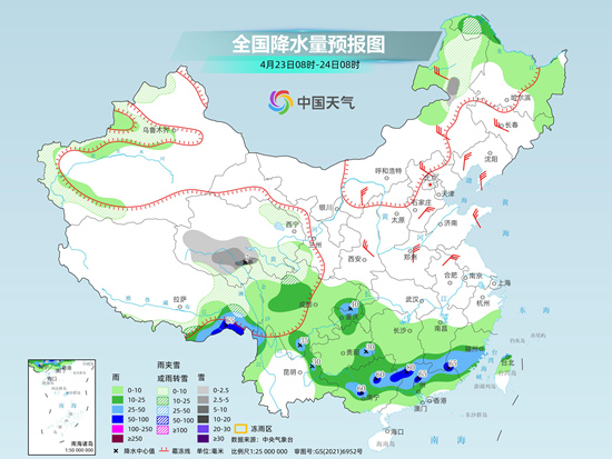 明天,新疆沿天山地区和南疆西部山区、青海大部、内蒙古东北部、西藏东部和南部、川西高原北部等地部分地区有小到中雪或雨夹雪,其中,青海南部等地部分地区有大雪。江西南部、湖南南部、福建中南部、广西大部、广东北部以及云南东部、重庆等地部分地区有中到大雨,其中,福建西南部、广西中部、广东北部、西藏东南部等地部分地区有暴雨。