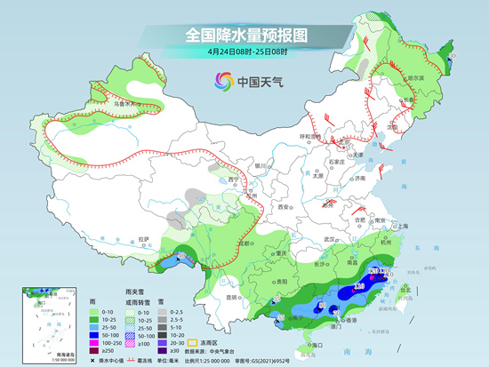 后天,新疆沿天山地区和南疆西部山区、青海中东部、内蒙古东北部、西藏东北部、川西高原北部等地部分地区有小雪或雨夹雪。江南南部、华南大部以及黑龙江东北部、西藏东南部等地部分地区有中到大雨,其中,江西南部、福建西部和北部、广西东部、广东中北部等地部分地区有暴雨到大暴雨。