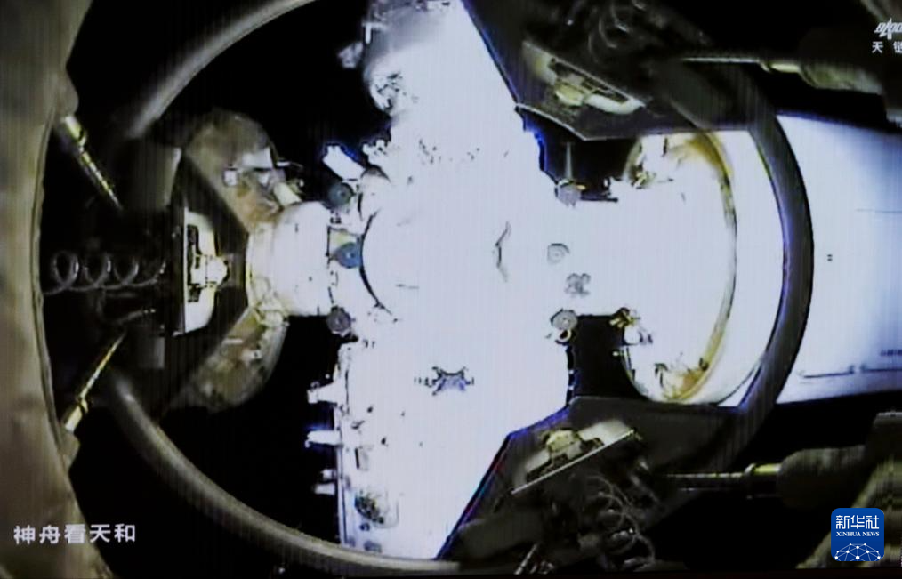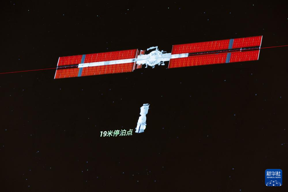 4月24日在北京航天飞行控制中心拍摄的神舟二十号载人飞船成功对接空间站天和核心舱画面。新华社记者 金立旺 摄
