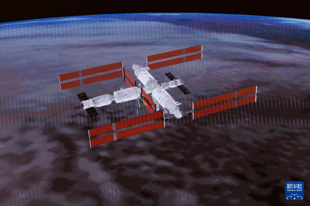 4月24日在北京航天飞行控制中心拍摄的神舟二十号载人飞船对接空间站天和核心舱过程的模拟画面。新华社记者 金立旺 摄