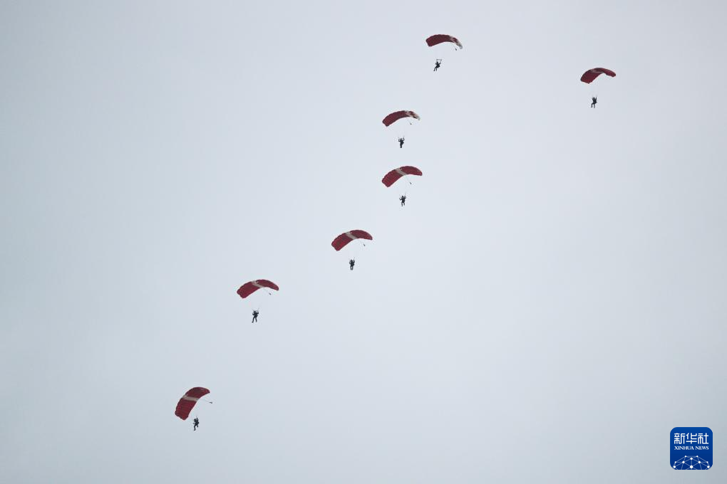 8月9日,红狮跳伞队在新加坡国庆庆典上表演跳伞。