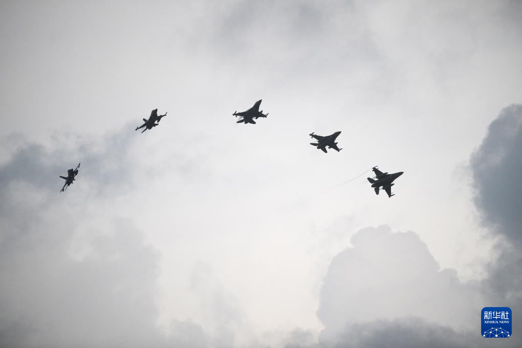 8月9日,新加坡空军战斗机在新加坡滨海湾上空表演特技飞行。