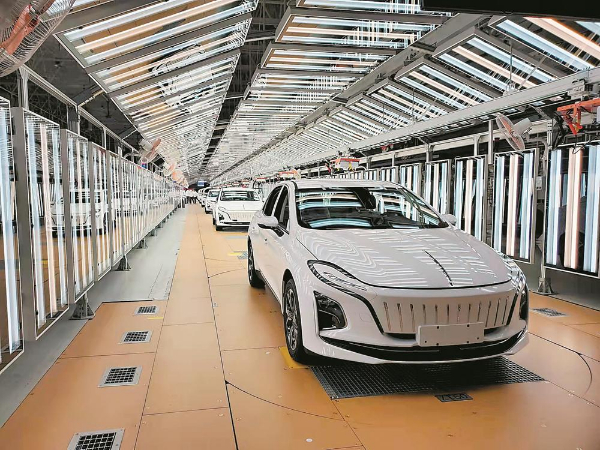 正在走下生产线的红旗E-QM5车型