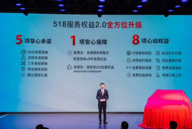 相较1.0版本,518权益2.0版新增异地维保奖励、腾达人星级礼遇、延迟交车补偿、同品置换补贴、老客户续保享2次免费机油、行驶里程奖励等6项权益,以及对整车终身质保、30日免费退换、全程快速救援、三年易损更换、特殊日免工时、四季延时服务等6项权益根据用车场景痛点进行了升级。
