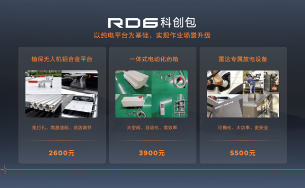 针对乡村用车场景,助力科技兴农的雷达RD6科创包同步发售,共包含植保无人机铝合金平台、一体式电动化药箱以及专属放电设备三大组件,分别售价2600元、3900元以及5500元。其中,植保无人机铝合金平台具备免打孔、高度适配、灵活调节三大特点,可适配市面上大多数机型,专属充电设备具备可视化、大功率、更安全等优势,最大支持15kW大功率放电,还可与后斗放电面板同步放电,消费者可登录吉利雷达官方商城选购。