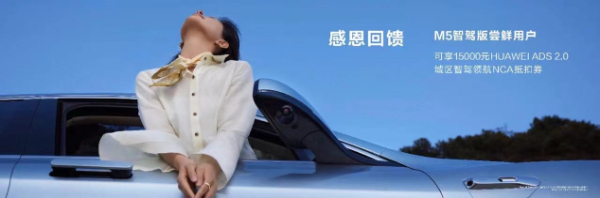 而问界M5系列车型凭借卓越操控、领先智慧、超长续航等鲜明特性,赢得了用户的信任与认可,据悉问界M5车主净推荐值(NPS)高达86.4%。目前,问界M5智驾版拥有最高15000元的HUAWEI ADS 2.0城区智驾领航NCA抵扣券权益,以感恩回馈用户认可。