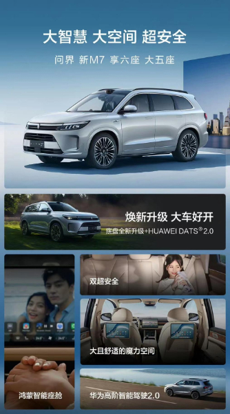 作为智选车模式的开创者,赛力斯汽车与华为开创了联合业务深度跨界融合的先河,彼此赋能并打造了一系列备受用户喜爱的产品。其中,问界新M7以“大智慧、大空间、超安全”诠释了中大型SUV的价值标准。