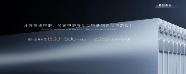 目前,长安汽车正在开展锂硫电池、金属电池等新型电池的原型电芯设计,预计能量密度将突破1300-1500Wh/kg,力争在2035年实现搭载应用。