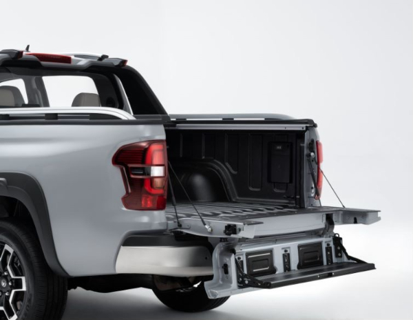 车身尺寸为 5630x1930x1885mm,轴距 3430mm。长安猎手尾部造型立体感十足,后挡板上的凹槽,全新设计的大灯组,以及金属质感后保险杠,使得车尾设计语言更加丰富。长安猎手采用分段式开启多功能尾门,可以实现3种展开状态,无论户外休闲或是装载运输,都更加便捷,货箱尺寸为 1860x1595x500mm。