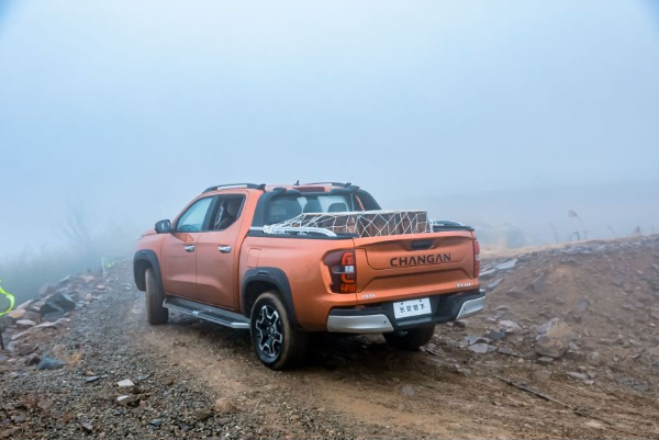 在公路驾驶时,蓝鲸动力发动机提供的动力充沛,超车、爬坡均可轻松完成。在时速达到100km/h左右时,深踩油门踏板,依然有不错的推背感。长安猎手搭载了前、后桥硬锁+能量锁。在非铺装路面行驶时,切换至高速四驱模式,即可轻松通过。