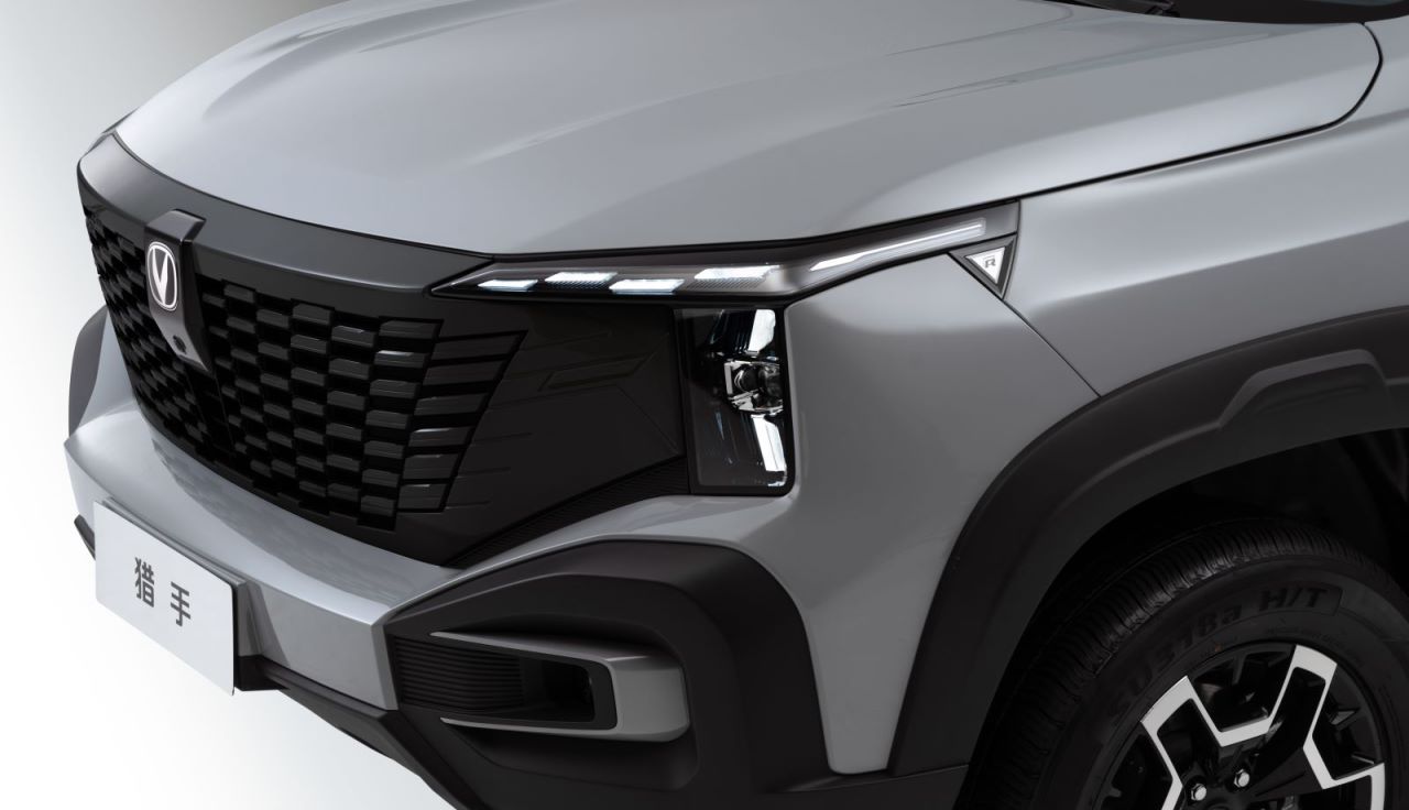 前脸造型是人们第一眼就看见的内容,长安猎手动势前脸采用了鲨鱼鼻型面的设计,营造出瞬间爆发的力量感和前冲感;猎影格栅由无界数字化点阵集合而成,融合科技与野性美感;狭长犀利的锐眼大灯,透露着一股凌厉而威严的气势,独特的LED标识进一步提升前脸辨识度。