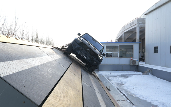 电池位于车辆底盘中部的猛士917在坡道性能试验中充分展现了其侧翻稳定性和强劲的动力,侧翻稳定角达到44.3度,最终试验结果显示,车辆能在90%的坡度上,发挥持续稳定的动力输出。值得一提的是,电池包与车架梁一体化设计是猛士917的一大亮点。