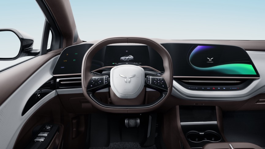 进入车内,环抱悬浮的中控、喀纳斯湖面涟漪般的纹理以及将天空尽收眼底的天幕,宛如一幅人车自然相融共生的画卷,“山环水抱、天光云影”意境之美诠释得恰到好处。