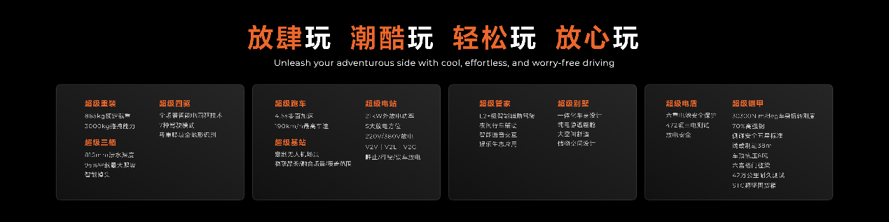 在智能化方面,雷达地平线的L2+级智能辅助驾驶水平,不输主流新能源乘用车,540°透明底盘、ADB矩阵式大灯。它的智能座舱语音响应速度非常快,小于200ms,并且支持免唤醒,实现了可见可说可控,还能连续对话。最重要的是,智能语音支持22项无人机控制,可以通过语音,对无人机下达路线规划、数据传输等指令。