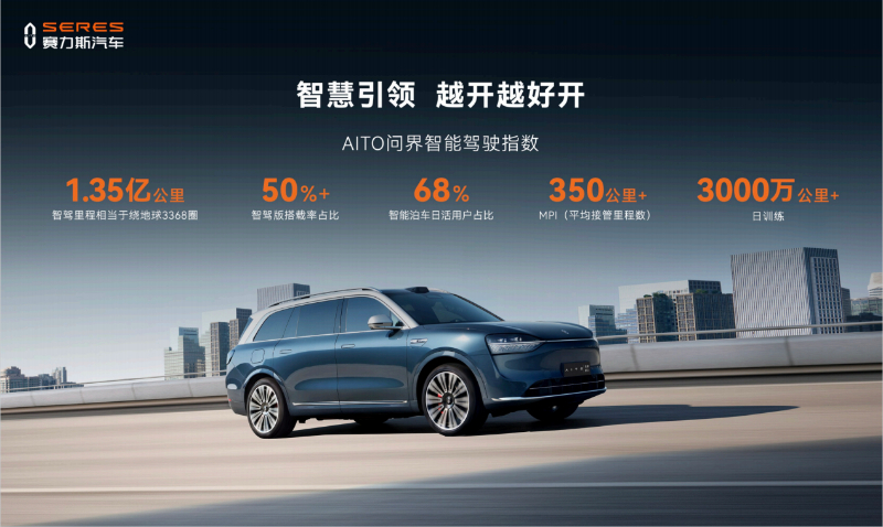 分享会上,赛力斯汽车总裁何利扬正式发布最新的AITO问界智驾指数。该指数显示,AITO问界智驾车型累计行驶里程达超4.8亿公里,其中智驾累计里程达1.35亿公里,相当于绕着地球跑3368圈。此外,AITO问界M9智能泊车日活用户占比达到68%,智能驾驶已成为用户选择AITO问界产品的最重要的原因。
