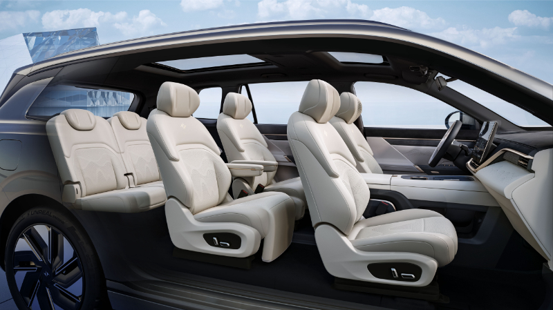 eπ008作为一款能够带来全家舒享的大型SUV,满足“536”家用大型SUV的黄金标准,即5米车长、3米轴距、真三排大六座布局,既能保证舒适的乘坐空间,更能在特殊情况下带来更高的第三排安全性。