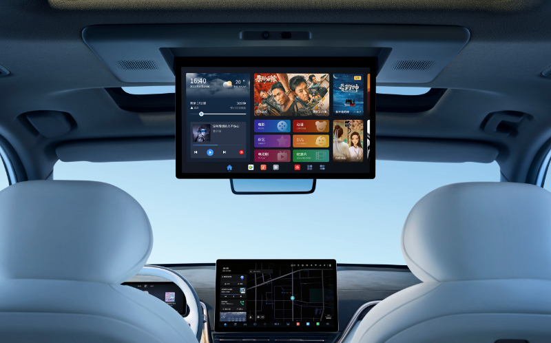 eπ008搭载15.6英寸智能后排娱乐屏,可实现无线投屏、一键飞屏等贴心功能,配合全车20个扬声器和7.1.2声道WANOS全景声环绕音效,随时随地,摇身一变“家庭影院”。