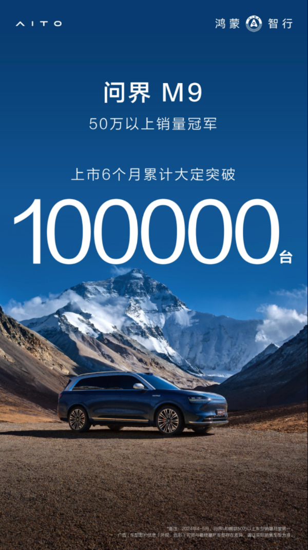 在华为尖端科技的强势赋能下,问界M9成功改写了中国豪华车市场格局,树立了科技豪华的新标杆。上市半年时间,问界M9已经赢得了超过十万用户的青睐与认可,引领豪华车市场的新潮流。相信随着问界M9和享界S9双旗舰的联袂登场,鸿蒙智行将更进一步,为高端市场用户带来更加美好的智能出行新体验。