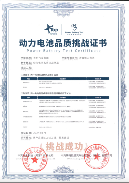 6月27日,吉利汽车正式发布自研自产的最新一代“刀片式”磷酸铁锂电池——神盾短刀电池。相比目前行业中的“长刀电池”,神盾短刀电池在安全性能、循环寿命、快充能力和低温放电等方面,具有显著优势。