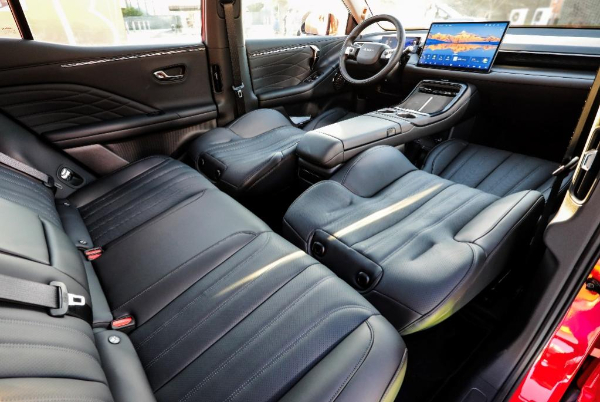 埃安霸王龙内饰设计灵感来自于现代主义建筑大师赖特的流水别墅,营造出“都市悬浮座舱”的效果,每一条缝线都经过了精心处理,还有100%软包的内饰,不小心磕碰了也不会受伤