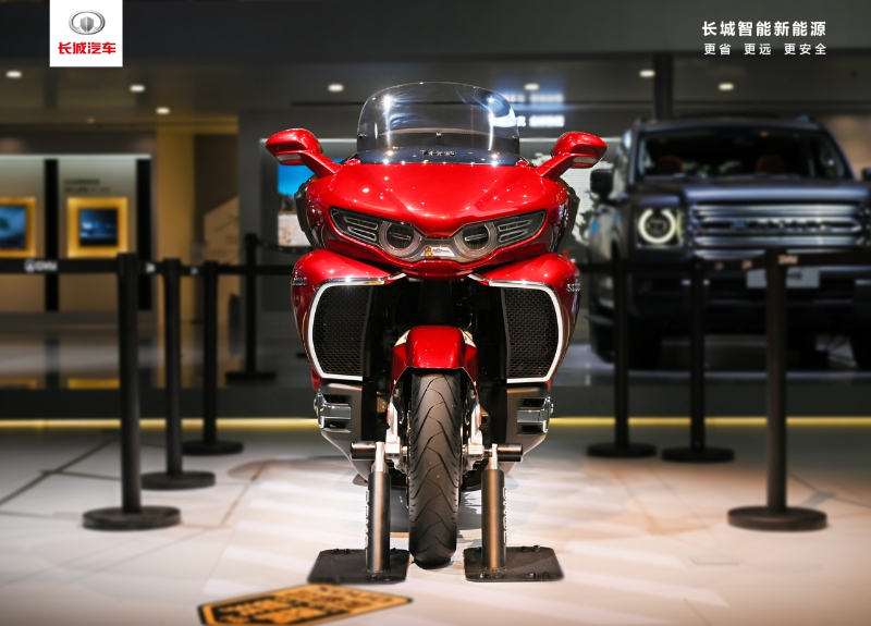 长城灵魂是长城汽车旗下的高端摩托车品牌,旗下首款豪华旅行车身披“醒狮红”车色亮相,以炫酷的造型一登场便艳惊四座,不仅在设计上独具匠心,更在动力性能和驾驶体验上实现了全新突破,成为车展上的一道亮丽风景线。长城灵魂摩托车采用水平对置8缸发动机+8DCT的动力组合,配合8155芯片的车规级设计理念,以硬实力将中国摩托车产业推向崭新高度,吸引了众多摩托车爱好者的目光。