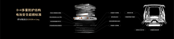 在电池安全方面,Hi4-Z的电池包采用结构强化的铝型材壳体,电池包通过边梁强化+双层结构,扭转刚度达到32000N·m/deg,上壳体选用高温复合材料,配合多层隔热防火材料,可实现单电芯热失控时,整包不起火。另外,电池包还采用超IP68防水等级,水深1米以下48小时静置各项功能正常。