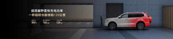 续航长更需要充电快,Hi4-Z配备800V电压平台,3C高充电倍率电池,集成式升压模块,最大充电功率163kW,使用800V超充桩仅需一杯咖啡的时间就能够增加120公里纯电续航。同时,Hi4-Z还集成了升压模块,即便使用低压充电桩,依然是插混越野最快的充电功率。