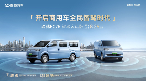 随着新车的上市,瑞驰EC75厢货版和客运版形成了完备的智驾产品矩阵,为用户带来更丰富的创富选择。同时,作为“智慧商用车”的领军企业,瑞驰汽车率先拉开商用车全民智驾时代的大幕,引领2025年商用车市场步入“人人享智驾”的新时代。