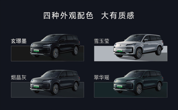 在设计上,腾势N9将中国传统建筑美学与文化智慧中的“合”融入其中。顶天立地的前脸,双星冕大灯,纵向建筑感的外观轮廓与1:2的黄金比例,营造出不可撼动的气场。全新22吋多轮辐轮毂,精妙刻画出整车的力量之美。外观提供玄璟墨、雪玉莹、烟晶灰、翠华瑶四款车色。
