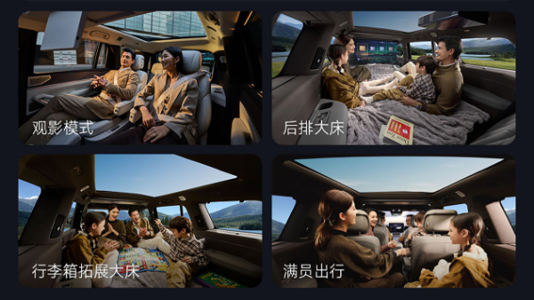 惊喜的还有全车云栖座椅。前排全息智能律动主驾、首创“一气两用”式主动驾驶侧翼支撑以及零重力豪华副驾,让前排乘客拥有极致体验。豪华零感中排座椅功能配齐,加上同级独有的双横向移动功能以及双50W无线充电,带来独一无二的尊享体验。超宽适三排座椅配备全球首创座垫抬升功能,为第三排乘客提供媲美MPV的舒适享受。