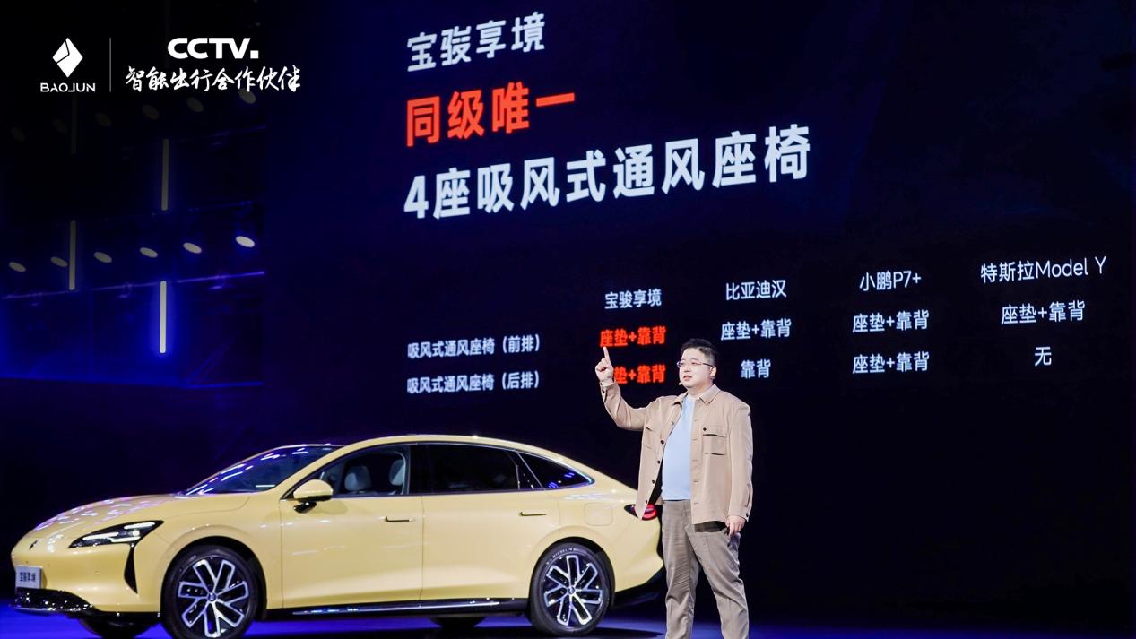 进入车内,宝骏享境内饰采用理想同款Nappa真皮座椅和同款PU材质软包,全车39处包覆数量同级最多,5.12㎡包覆面积同级最大,再加上同级唯一4门储物格软包覆,提供豪车级别的越级品质体验;同时宝骏享境还搭载同级唯一4座吸风式通风座椅,让全家都能畅享清凉舒适。