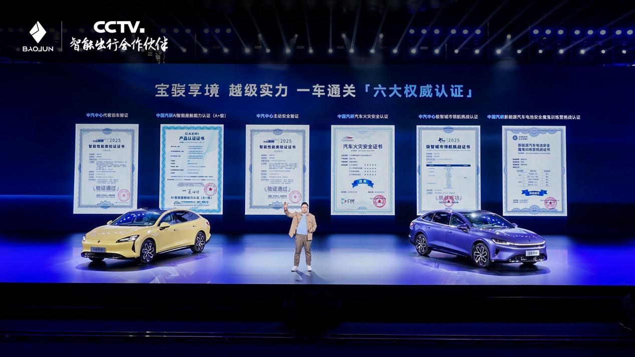 宝骏享境一举斩获中国汽研、中汽中心等权威认证,先后获得代客泊车、AI智能座舱、主动安全等六大认证。宝骏汽车还荣获“中央广播电视总台2025年智能出行合作伙伴”称号。