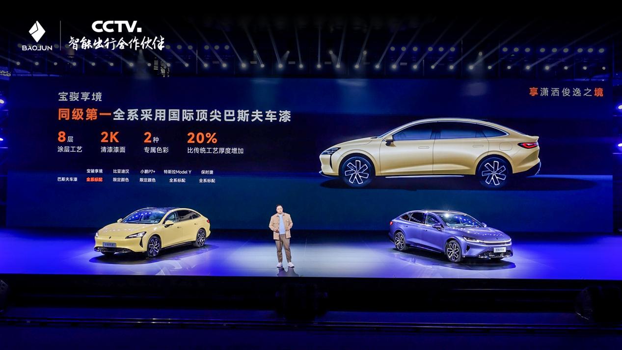 宝骏享境全系5款车色均采用国际顶尖巴斯夫车漆,8层涂层工艺,2K清漆漆面,车漆厚度比传统工艺增加20%,制造工艺同级第一。此外,翔麟紫和玉顶黄是巴斯夫为宝骏享境量身定制的专属车色,品质感拉满的同时满足不同用户的个性需求。