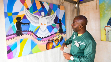 1月17日,在山东省枣庄市非物质文化遗产保护中心,民间艺人阚宗勤在创作面塑作品“生肖马”。